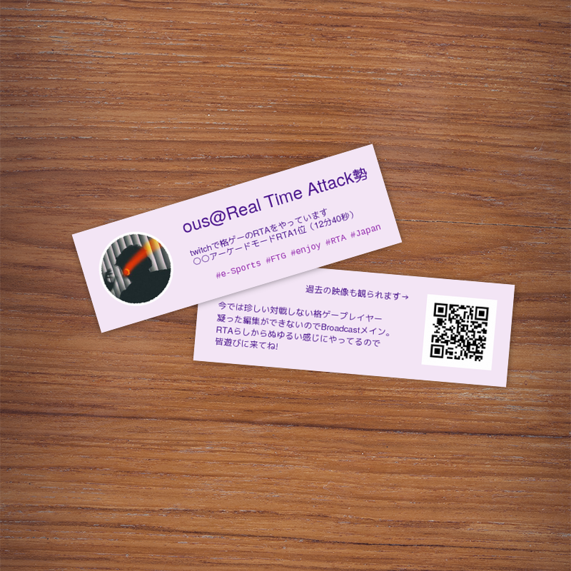 何より速さが足りないタイムアタック勢のアナタにはこの名刺!オフラインイベントでも存分にその速さをアピールしましょう!