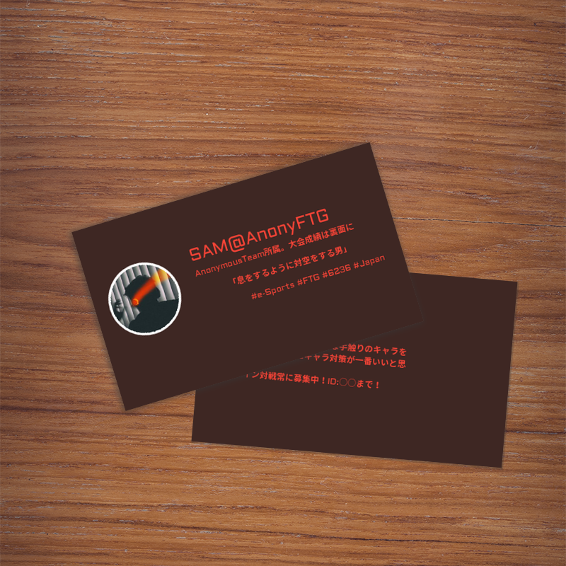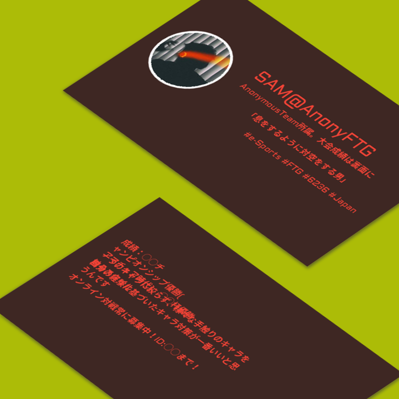 オフラインイベントのファーストアイテムとして活躍間違いなしのシンプルな名刺!色をチームカラーやデバイスの色に合わせるとグッとシンクロ率が上がります。