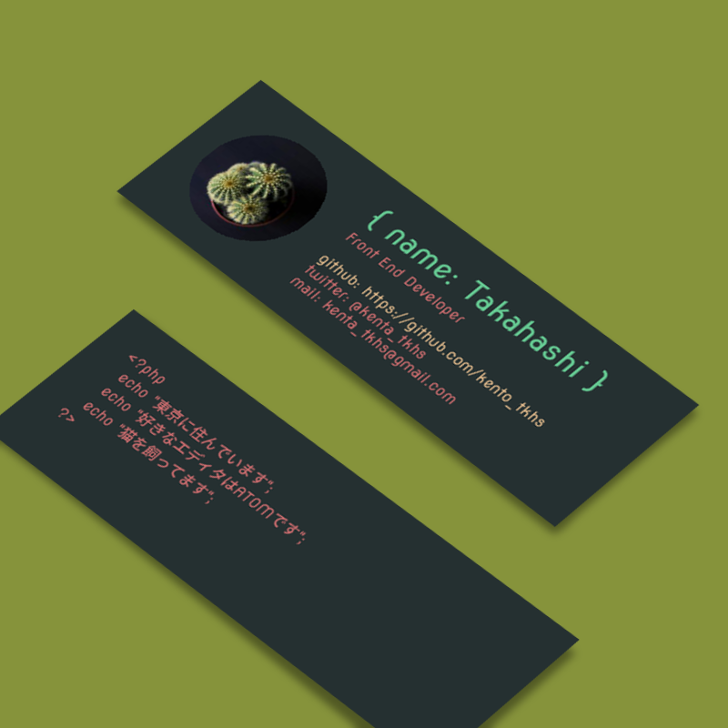 渋谷系フロントエンドを得意とするプログラマー向けタテ型名刺