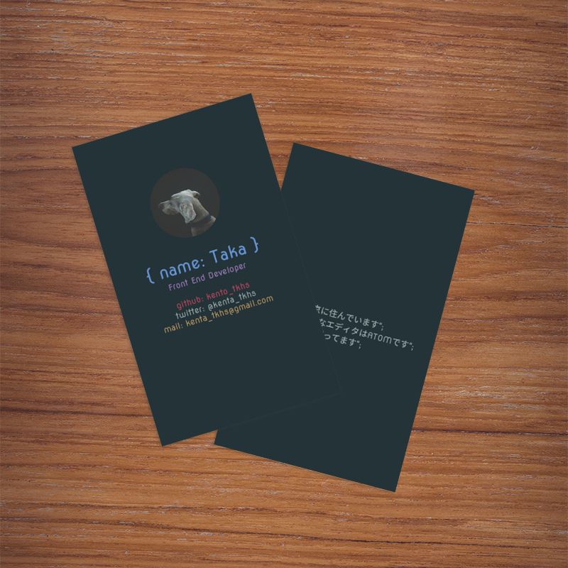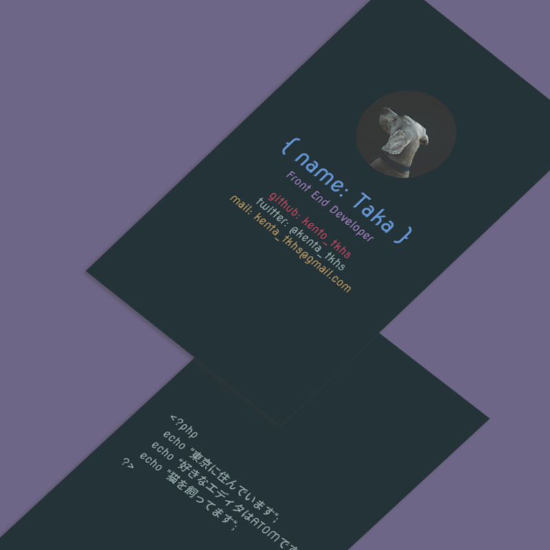 渋谷系フロントエンドを得意とするプログラマー向けタテ型名刺