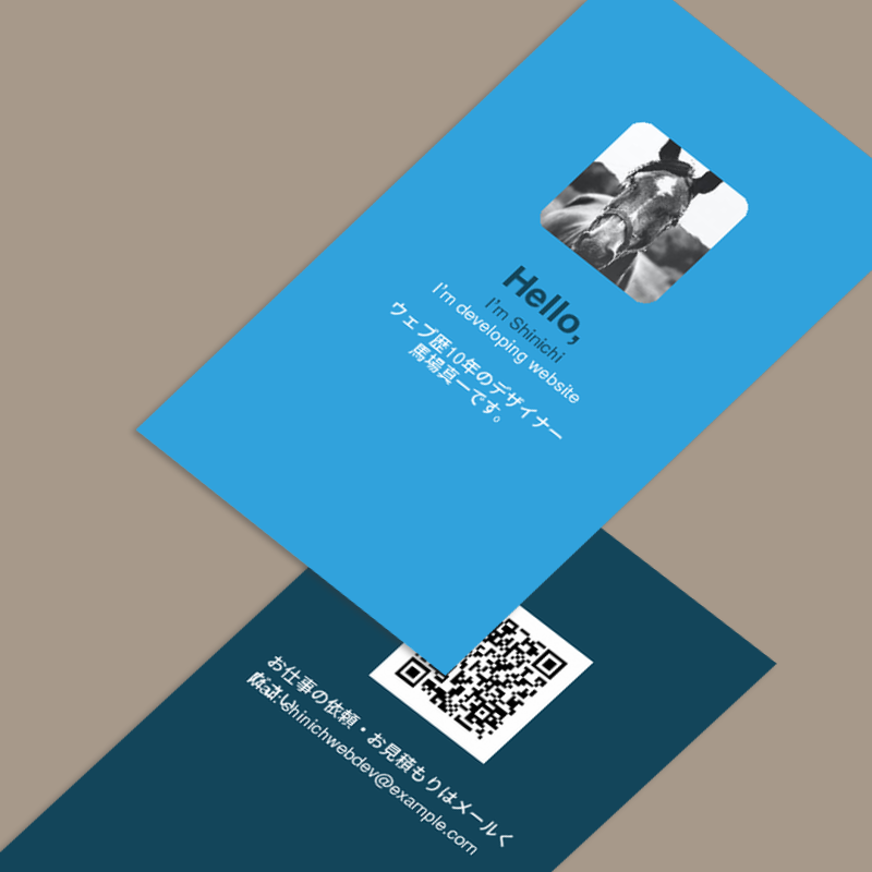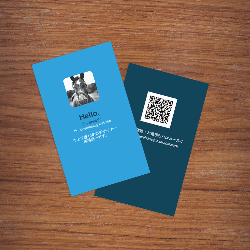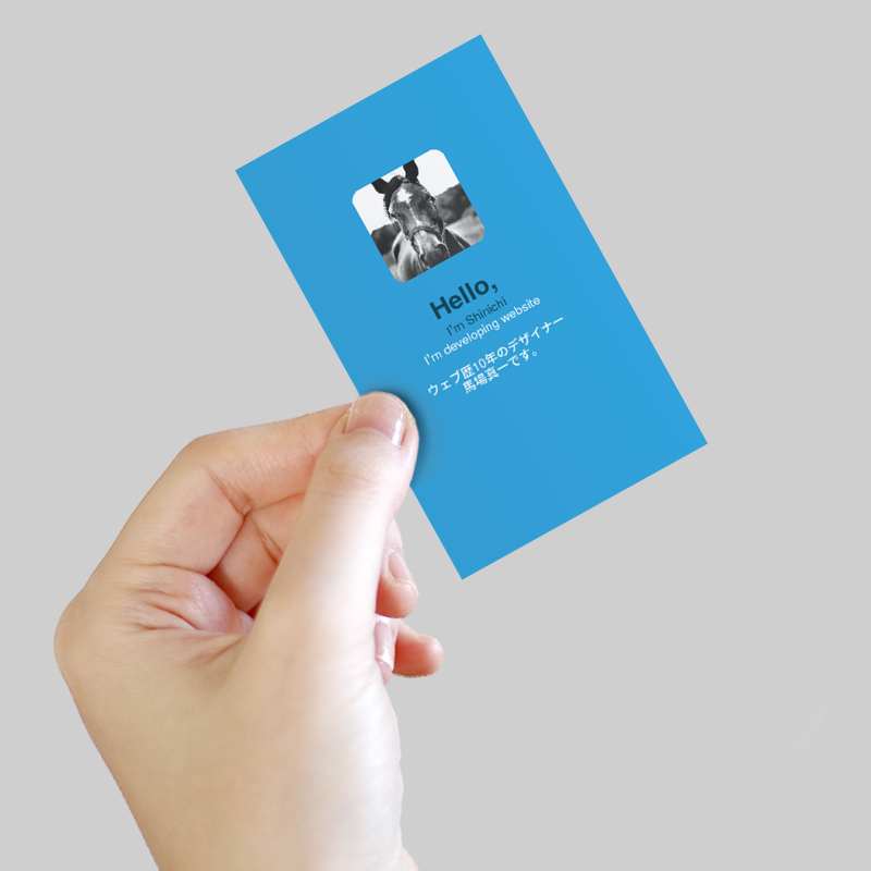 アイコンをモノクロにすることでクールにまとまります。ブルーも2色に絞って、白抜き文字を映えさせてます。インパクトのある馬の写真で次に会った時にも「あ、馬の人!」と覚えていてもらえるかもしれません。