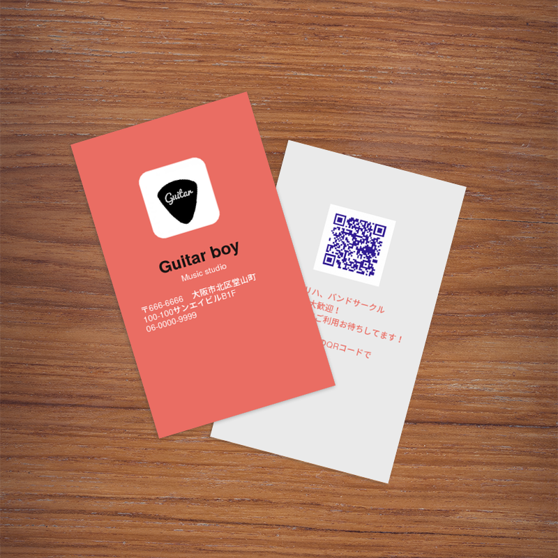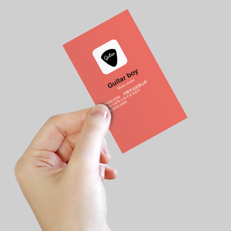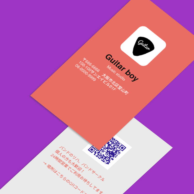 ギターを愛してやまない元ミュージシャンが経営する音楽スタジオのタテ型のショップカード